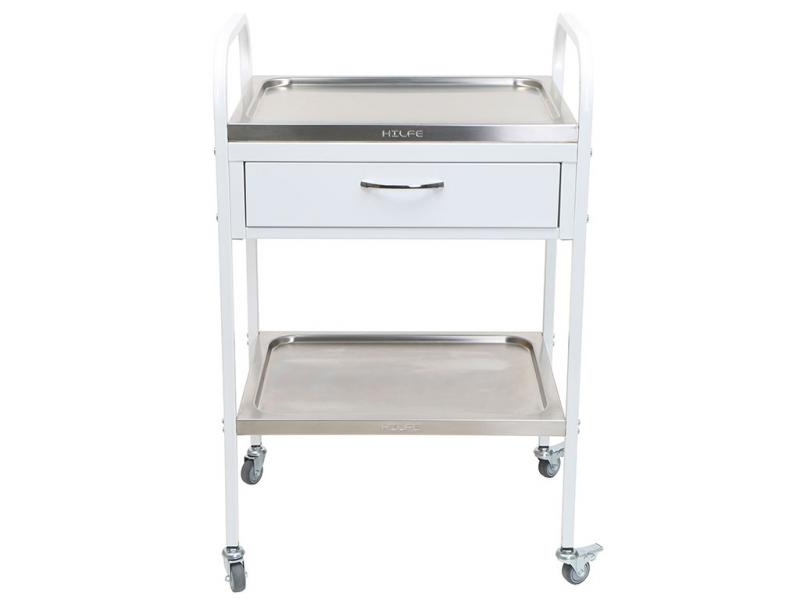 - столик процедурный имеет 4 колеса из немаркой резины, D= 50 мм. Два колеса снабжены тормозом