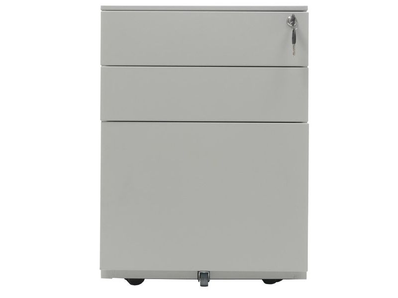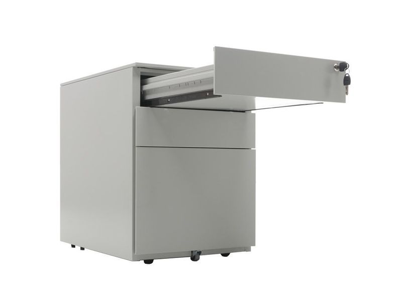 - Опции: пластиковые лотки и металлический ящик для канцелярских принадлежностей и других предметов. Возможность комбинирования цветов: корпус + фасады ящиков и крышка (конструкция тумбы металл+металл). Или отделка фасадов ящиков и крыши тумбы ламинированной плитой ЛДСП